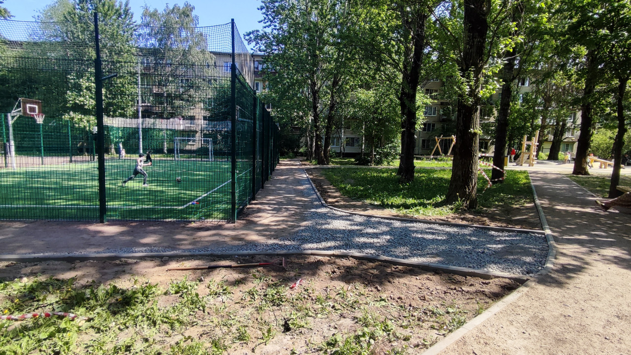 Новая пешеходная дорожка рядом с футбольной площадкой во дворе