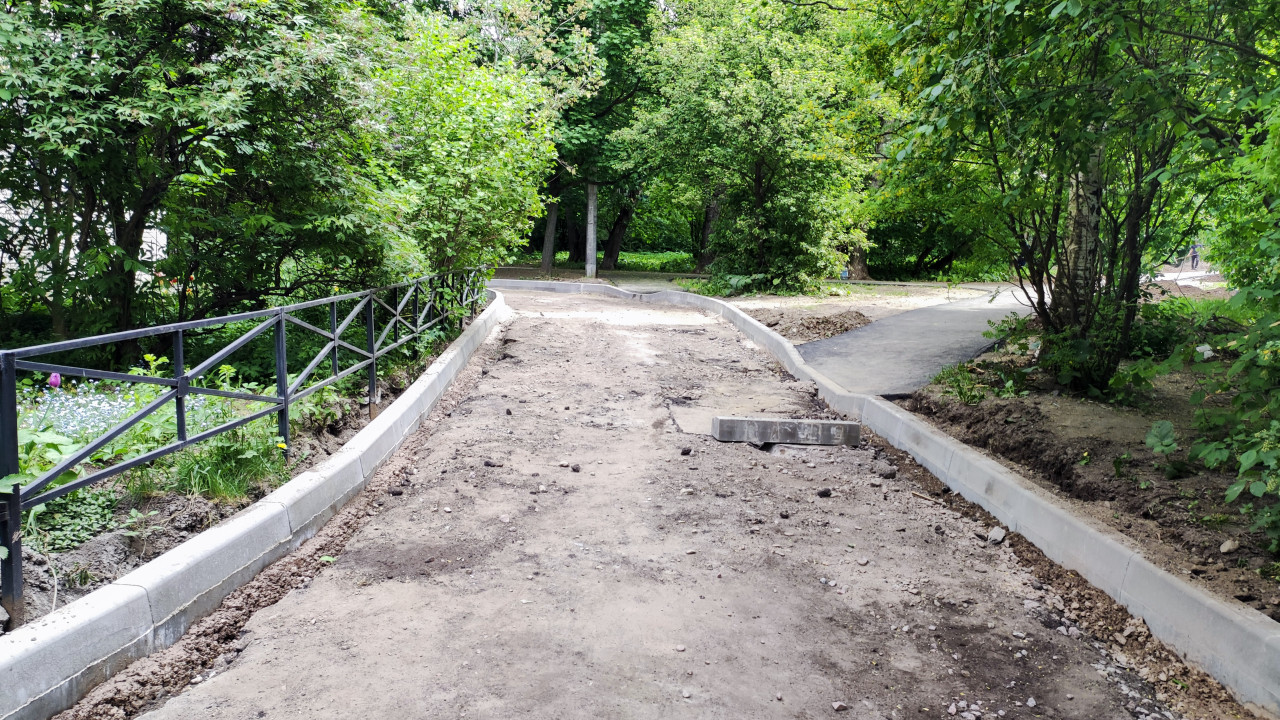 Пешеходная дорожка с новым бордюром на стадии благоустройства