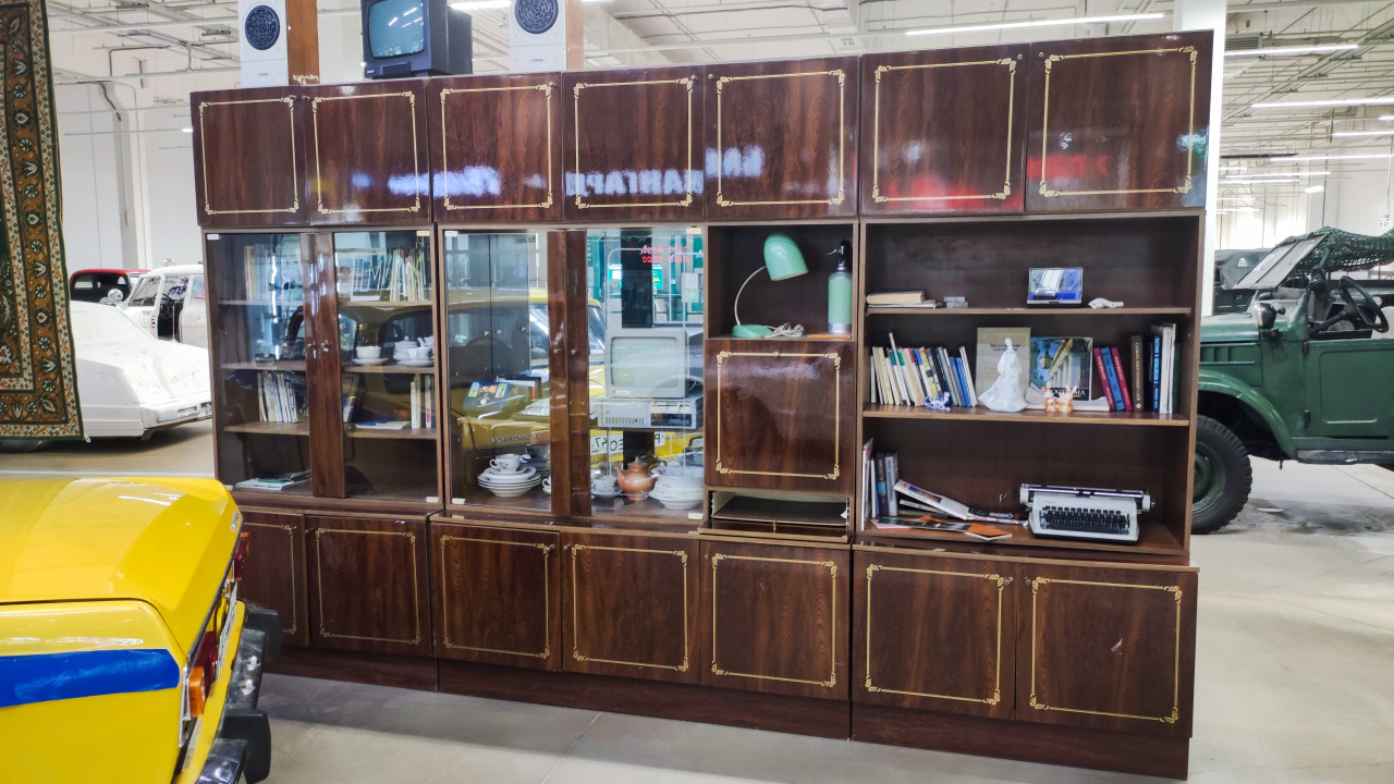 мебель СССР советский быт советская мебель стенка гарнитур посуда книги интерьер ретро интерьер антиквариат музей экспозиция ретро мебель советская эпоха полированный шкаф витрина фарфор коллекция посуды старые книги библиотека настольная лампа ретро стиль 1970 е 1980 е культура СССР советский дизайн история интерьераПохожие фотографии