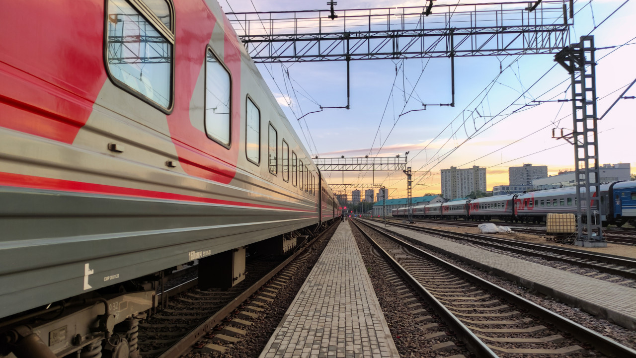 поезд железная дорога пассажирский поезд вагоны транспорт железнодорожный транспорт закат вокзал РЖД Россия рельсы станция закатное небо индустрия железнодорожный состав городской фон вечер пути электричество инфраструктура железнодорожная система поездка платформа путешествие движение транспортная артерия общественный транспорт транспорт РоссииПохожие фотографии