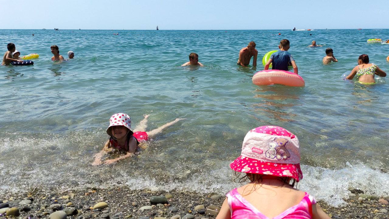 пляж море ребёнок девочка дети отдых лето солнце каникулы побережье вода волны семейный отдых туризм курорт детство летний сезон купание панама купальник семья галечный пляж надувные круги игра отпуск туристы летний досуг активный отдыхПохожие фотографии