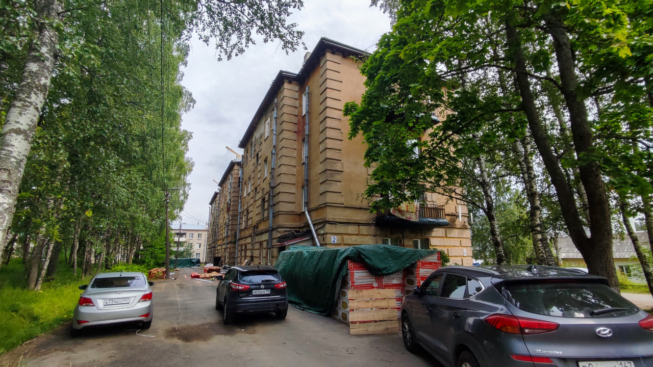 Жилой дом советской постройки с материалами для ремонта