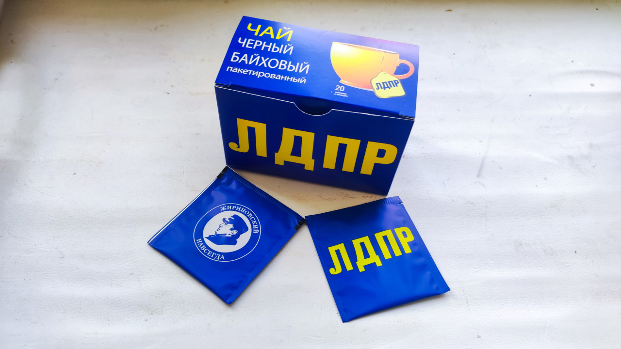 чай черный чай пакетированный чай упаковка напиток брендированная продукция сувенирная продукция партийная символика политика партия агитация реклама маркетинг продуктовый дизайн политическая реклама ЛДПР Жириновский символика брендирование Россия партийная продукция индивидуальные пакетики пропаганда логотип партия ЛДПР избирательная кампания политическая культура товары с логотипомПохожие фотографии