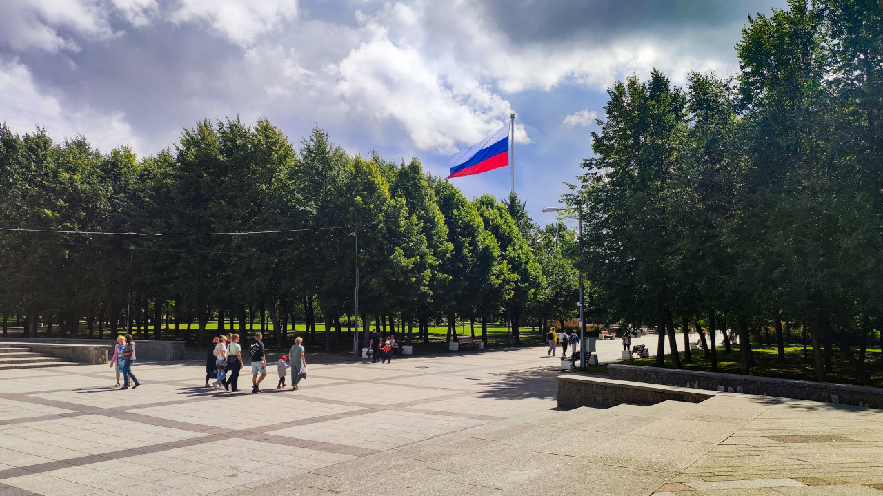 деревья парк зелёная зона трава газон кустарники природа экология городской пейзаж городская среда благоустройство озеленение общественное пространство отдых урбанизм Россия Санкт Петербург российский флаг флагшток национальный символ люди пешеходы прогулка архитектура облака небо площадь пешеходная зона скамейки тротуар повседневная жизнь городской ландшафт зелёные насаждения символика инфраструктура культурная среда городская территорияПохожие фотографии