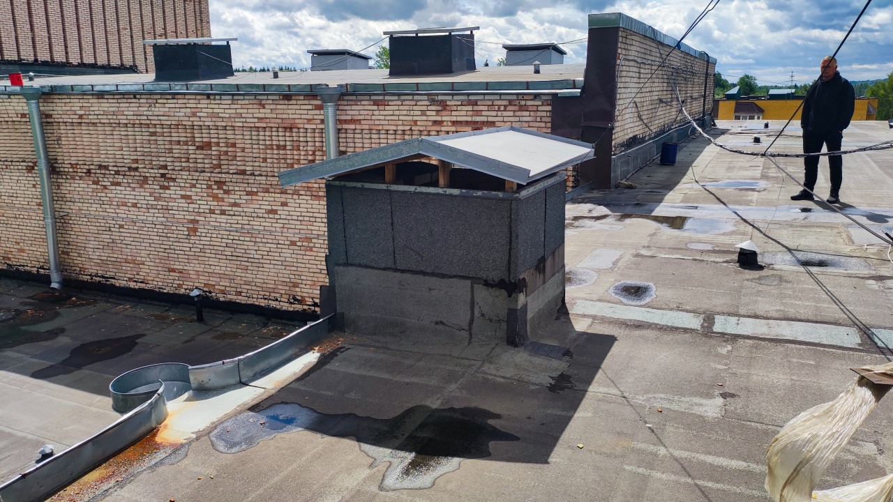 Осмотр плоской крыши жилого дома с вентиляционной шахтой