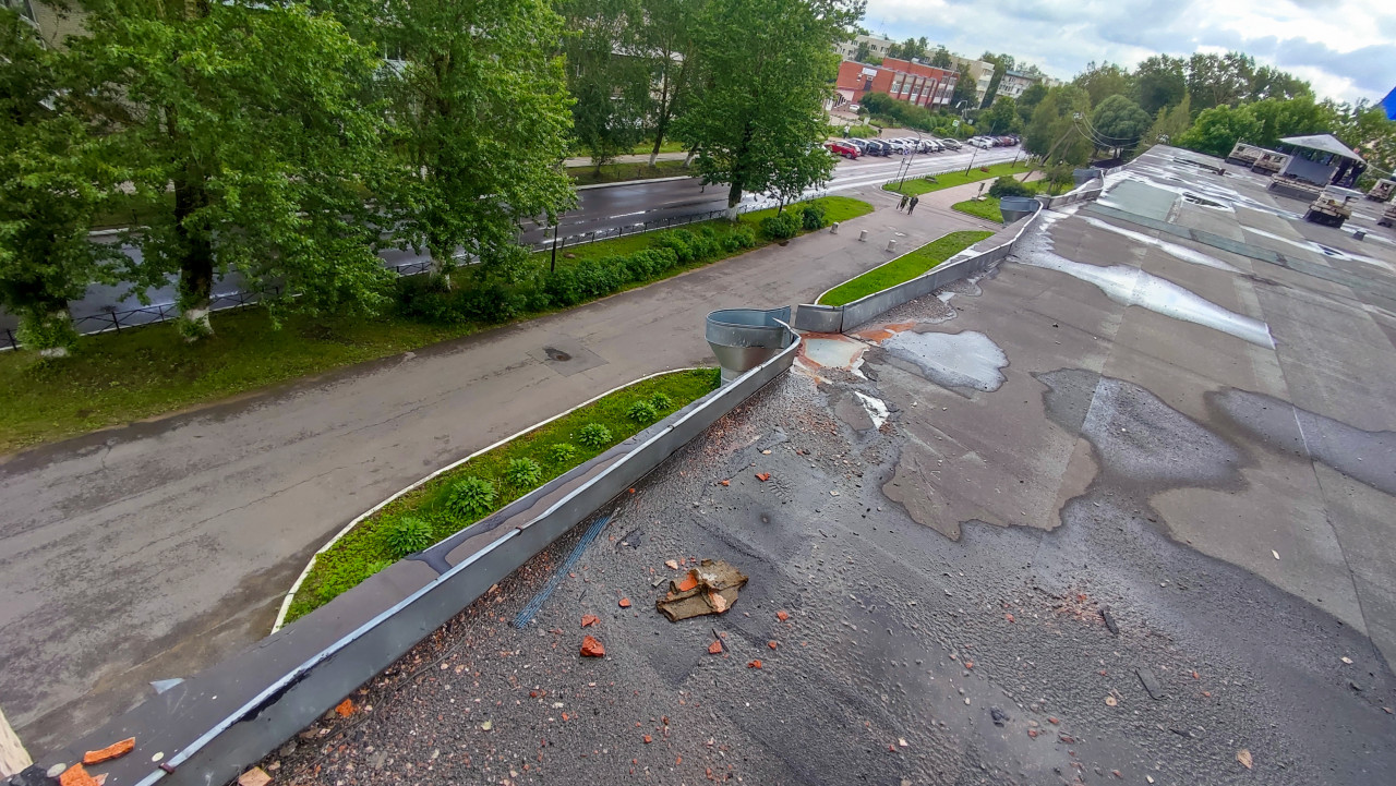 крыша плоская крыша кровля здание урбанистика инфраструктура городская среда дорога деревья городской пейзаж лужи дождливая погода тротуар асфальт жилой район городская архитектура дефекты покрытия обломки кирпичей инженерные системы вид сверху промзона жилые дома автомобили улица город после дождя вид с крышиПохожие фотографии