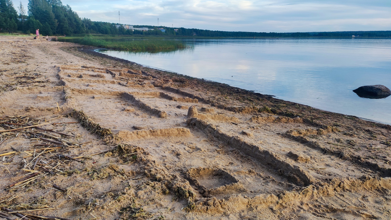 озеро вода отдых лето природа пейзаж пляж песок берег следы ямы в песке очертания ландшафт лес горизонт архитектура из песка экология побережье пресноводный водоем деревья пустынный пляж вечер небо облака вода у берега песчаный рисунок загородный пейзаж антеннаПохожие фотографии
