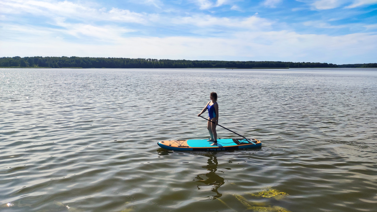 sup сапборд доска весло человек спорт активный отдых вода озеро лето туризм природа экотуризм досуг открытый воздух женщина купальник солнечная погода дневное время лес горизонт облака пресноводное озеро спорт на воде плавание отдых на природе летний день путешествия человек на доске оборудование для спорта пейзаж водоёмПохожие фотографии