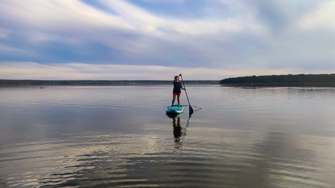 sup сапборд доска весло человек спорт активный отдых вода озеро лето туризм природа экотуризм досуг открытый воздух лес горизонт облака баланс движение пейзаж плавание пресноводный водоем водная поверхность прогулка отражение спортивное занятие водный спортПохожие фотографии