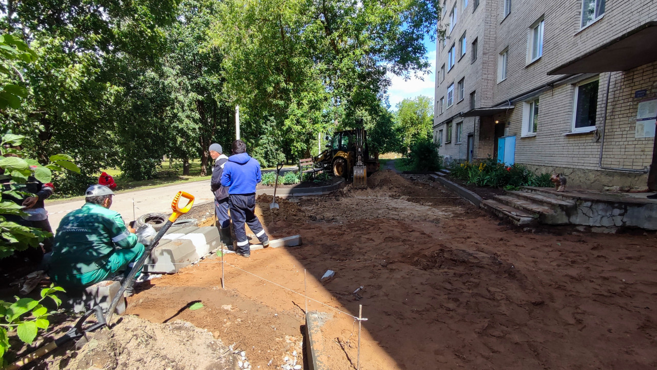 благоустройство благоустройство территории стройплощадка строительная площадка строительные работы строительство строительный участок двор рабочие техника экскаватор бордюры кирпичный дом многоквартирный дом ЖКХ благоустройство двора ремонт территории двор жилого дома спецодежда организация двора ремонт дорожки городская среда инфраструктура двор многоквартирного дома пешеходная зона укладка бордюров песчаная основа ландшафтные работы техника во двореПохожие фотографии