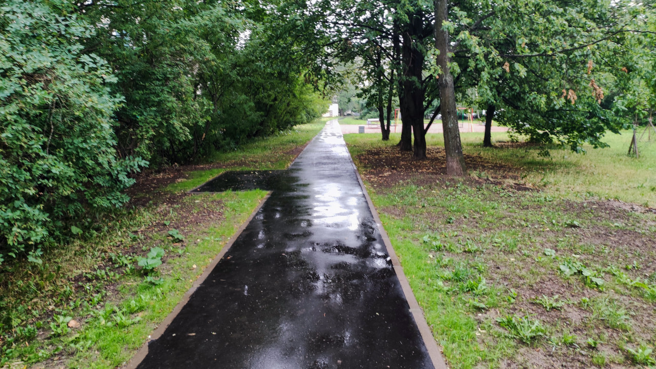благоустройство благоустройство территории стройплощадка строительная площадка строительные работы строительство строительный участок парк дорожка тротуар асфальт после дождя зелень деревья кусты парк в городе городская среда прогулочная зона пешеходный маршрут бордюр уличная инфраструктура ландшафт дождливая погода пешеходная дорожка природа в городе экология городская зелень городской парк общественное пространство повседневная жизнь прогулки городская инфраструктура комфортная средаПохожие фотографии