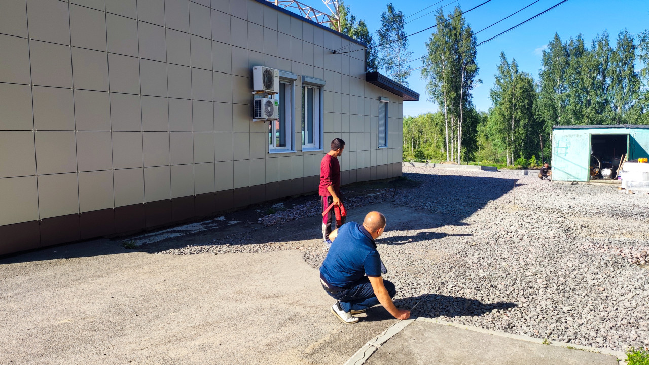 благоустройство благоустройство территории стройплощадка строительная площадка строительные работы строительство строительный участок стройка осмотр проверка здание облицовка панели кондиционер щебень ремонт рабочие инженерные сети гараж инструмент рабочий процесс инженерия наружные работы фасад жильё бытовка контроль работ проект строительный объект техническое обследованиеПохожие фотографии