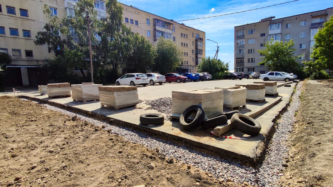благоустройство благоустройство территории стройплощадка строительная площадка строительные работы строительство строительный участок двор плитка поддоны шины ремонт двора подготовка придомовая территория многоквартирный дом панельный дом архитектура ЖКХ Россия стройка складирование материалы городская среда ремонт дорожек жилье автомобили парковка подготовительные работы застройка строительные материалыПохожие фотографии