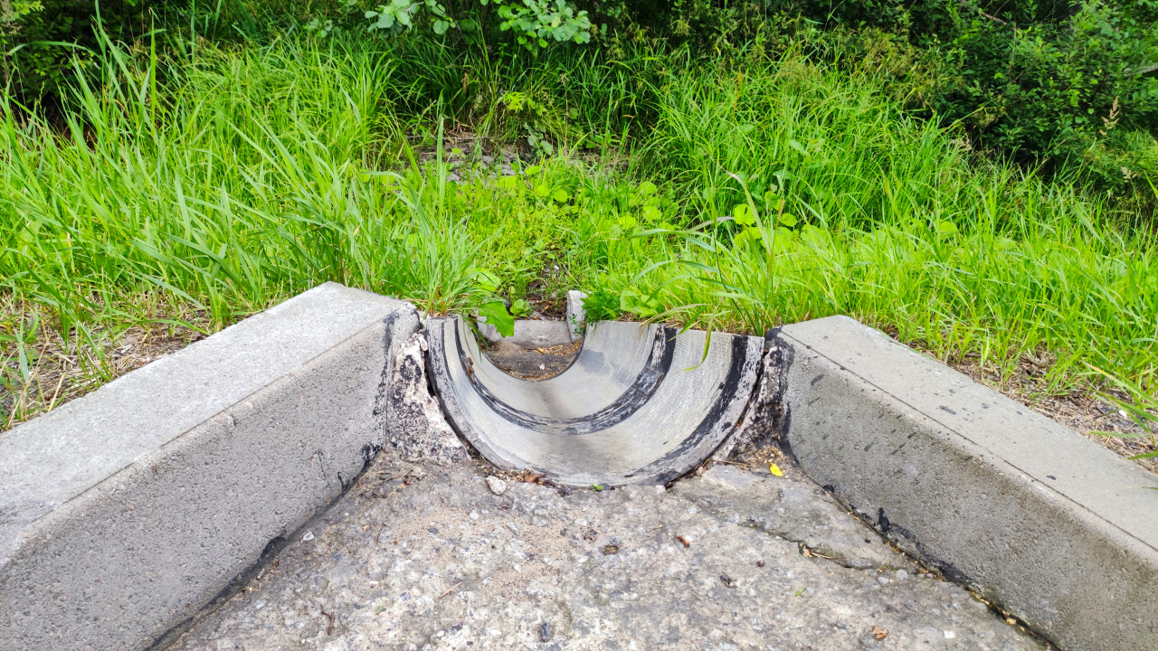 Водосточная бетонная лотковая конструкция у обочины дороги