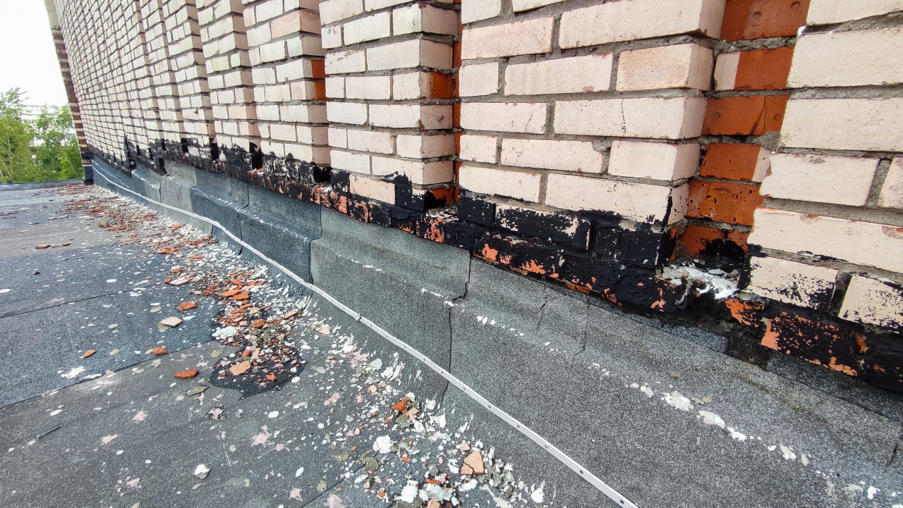 дефекты разрушение строительные дефекты техническое состояние фасад здания кирпичная кладка разрушение кладки дефекты стены трещины следы влаги осыпающийся кирпич плоская крыша рулонное покрытие инженерные дефекты эксплуатация зданий ремонт фасадов обследование зданий советская архитектура городская архитектура жилой дом административное здание повреждения инженерное обследование строительные проблемы дефекты кирпича обломки кирпичаПохожие фотографии