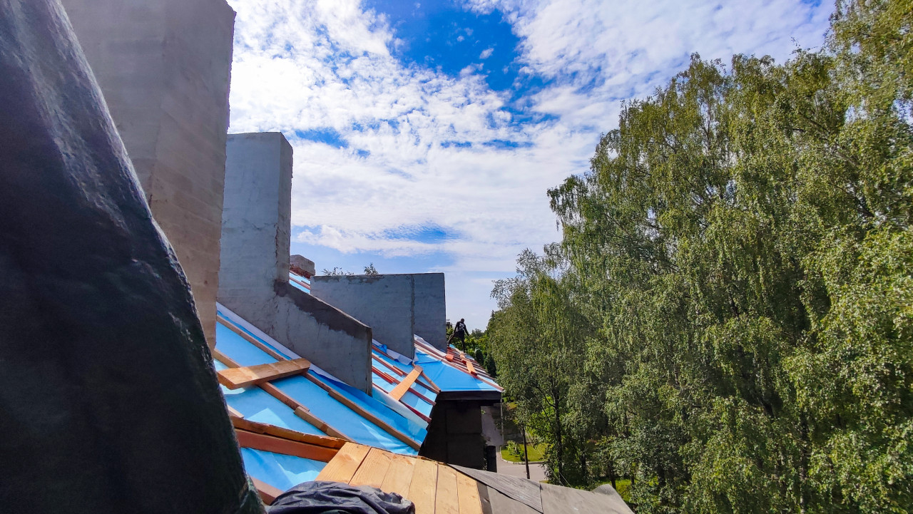 Ремонт крыши с установкой деревянной обрешётки и гидроизоляции