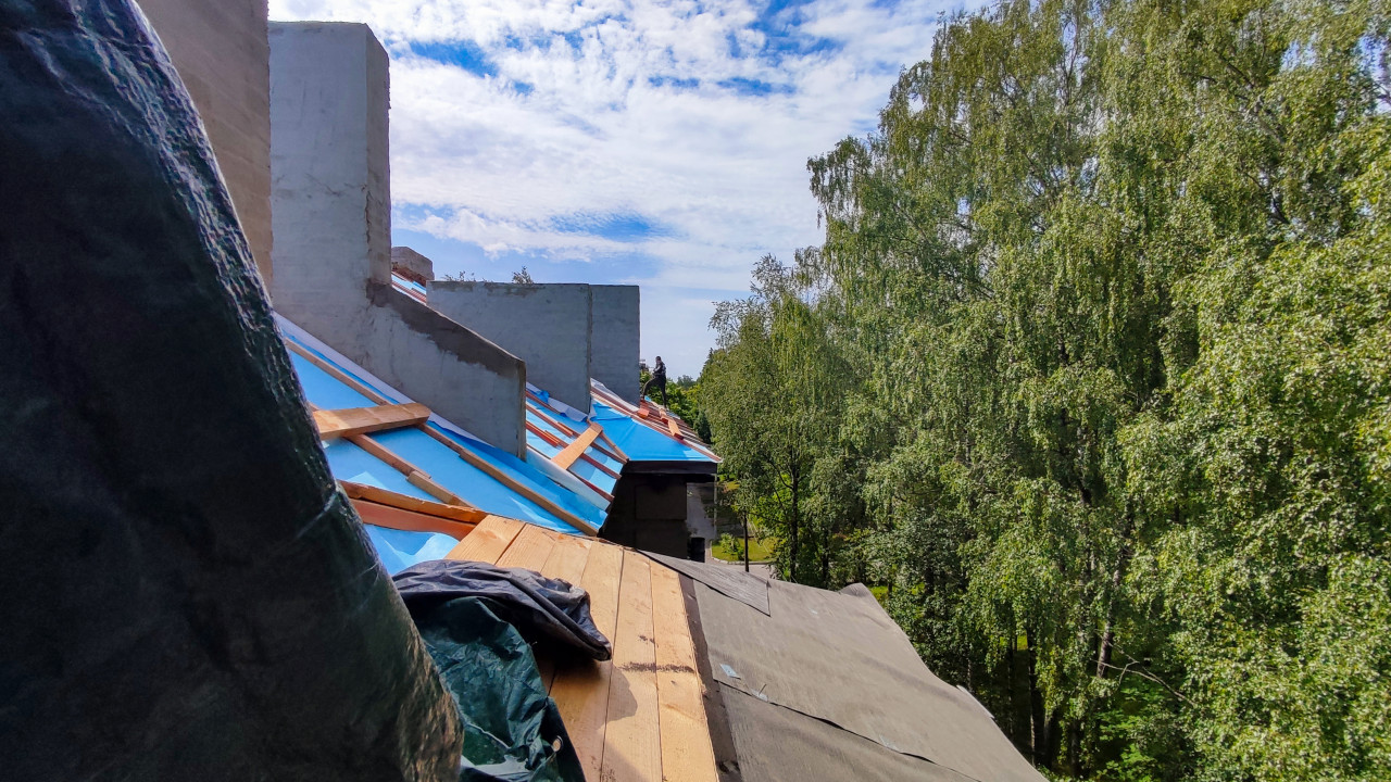крыша ремонт крыши крыша здания износ кровельные работы ремонт кровли повреждения крыши кровля кровельное покрытие крыша дома ремонт реконструкция монтаж гидроизоляция деревянная обрешётка доски капитальный ремонт строительные работы жилое здание многоквартирный дом вентиляционные шахты рабочий строительные материалы инженерные системы капитальное строительство жилой фонд стройка городская застройка монтаж крыши строительный процесс инженерные решения высотные работы безопасностьПохожие фотографии