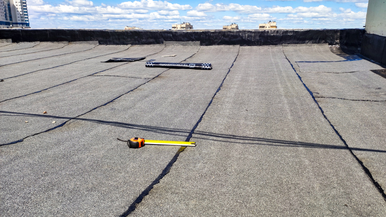 крыша ремонт крыши крыша здания износ кровельные работы ремонт кровли повреждения крыши кровля кровельное покрытие крыша дома рулонное покрытие рулонный материал гидроизоляция строительные работы ЖКХ капитальный ремонт многоквартирный дом рулонная гидроизоляция строительный процесс измерения рулетка стройматериалы укладка покрытия вентиляция крыши строительство ремонт дома строительные инструменты кровельная система монтаж покрытия изоляция крыши битумная мастикаПохожие фотографии