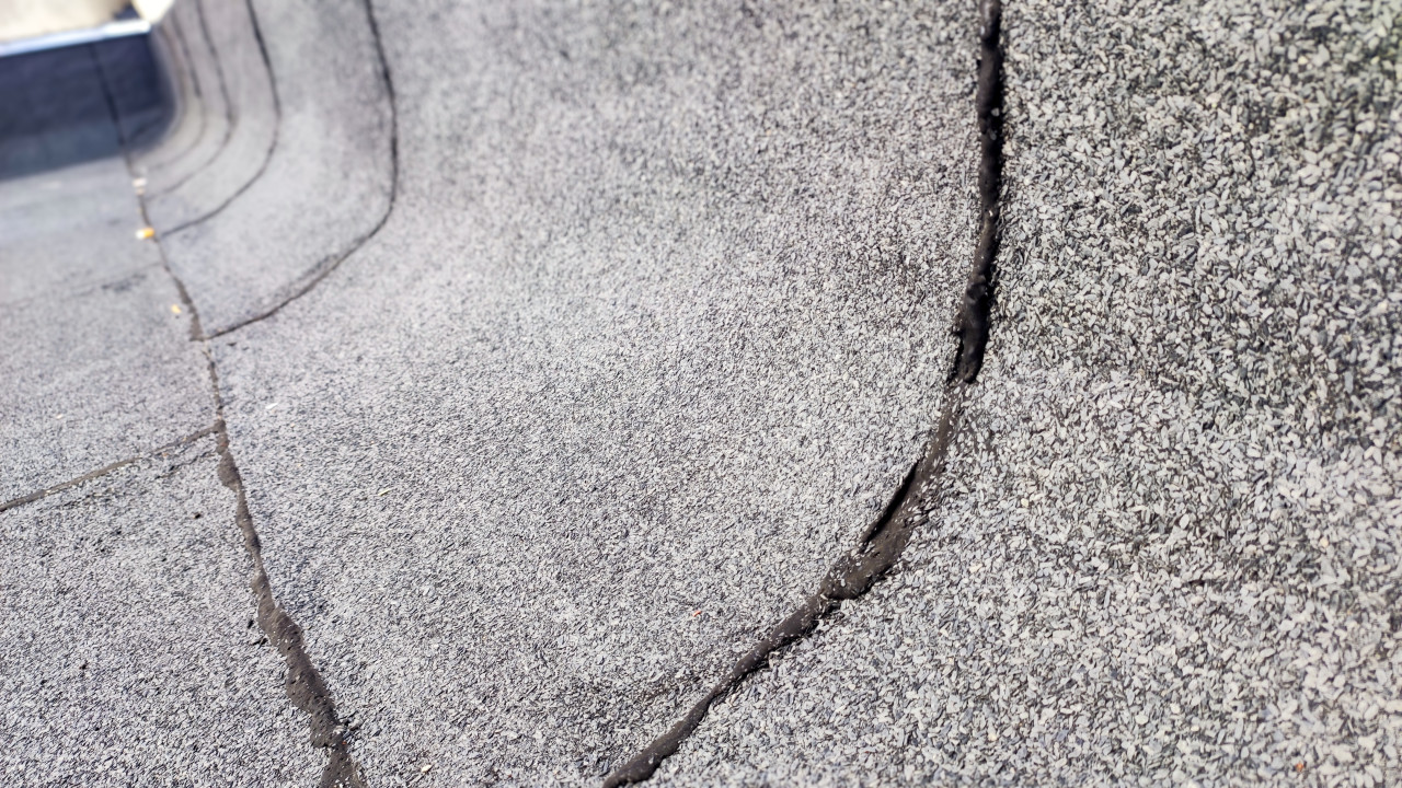 Трещина в изгибе рулонного покрытия на крыше