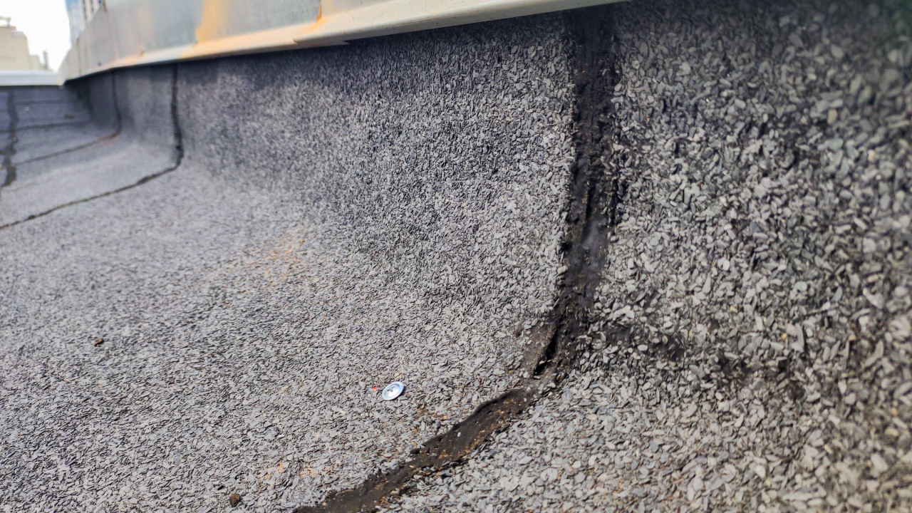 крыша ремонт крыши крыша здания износ кровельные работы ремонт кровли повреждения крыши кровля кровельное покрытие крыша дома вертикальный шов примыкание парапет мастика гидроизоляция рулонный материал плоская крыша металлическая планка узлы кровли герметизация строительный контроль эксплуатация зданий ЖКХ техобслуживание проверка узлов кровельный ковер изоляция монтаж кровли стандартное решение битумно полимерные материалы техническая фотография обслуживание кровли водоотводПохожие фотографии
