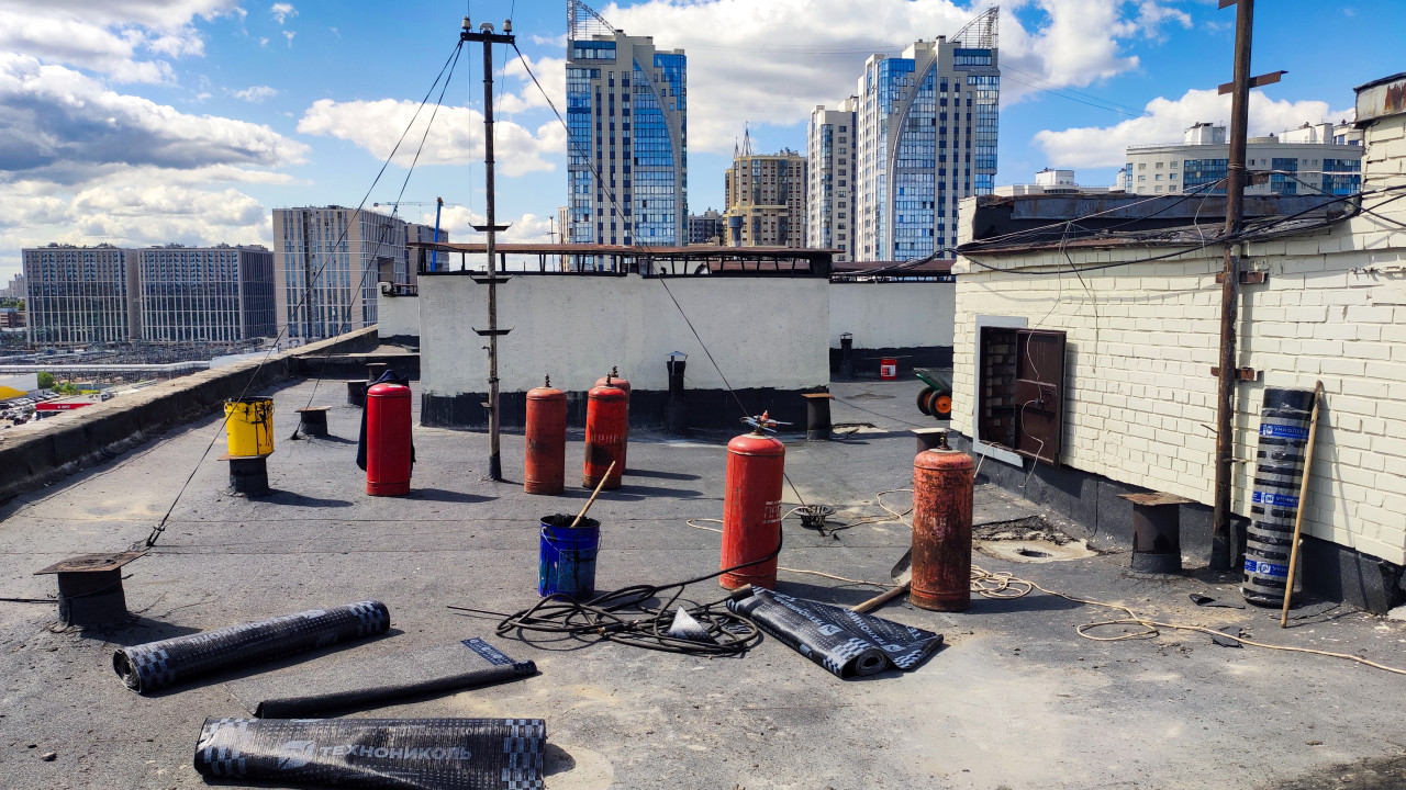 крыша ремонт крыши крыша здания износ кровельные работы ремонт кровли повреждения крыши кровля кровельное покрытие крыша дома газовые баллоны рулоны материала технониколь строительство строительные материалы инженерные системы эксплуатация зданий кирпичное строение жилые дома современные здания стеклянные фасады строительное оборудование инженерные коммуникации городская архитектура стройка техника безопасности мусор кабели строительные процессы строительная сфера обслуживание зданий материалы ремонтные работыПохожие фотографии