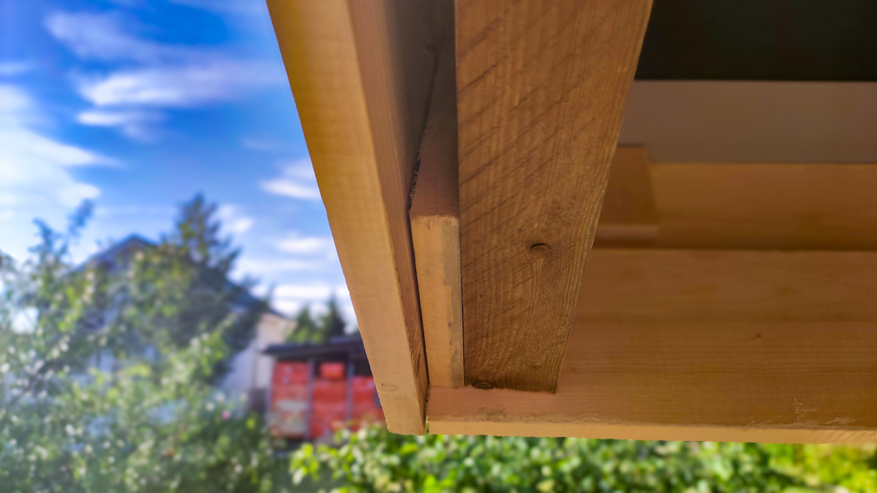 Нижний торец стропила деревянной крыши с подшивкой