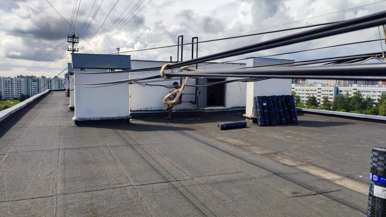 крыша ремонт крыши крыша здания износ кровельные работы ремонт кровли повреждения крыши кровля кровельное покрытие крыша дома гидроизоляция рулонные материалы технониколь капитальный ремонт эксплуатация зданий многоквартирный дом жильё инженерные сети кабели вентиляционный короб ремонт строительные работы городская застройка панельный дом кирпичный дом ЖКХ обслуживание зданий эксплуатация кровли строительные материалы город жилые дома подготовка к ремонту инженерные коммуникации техобслуживаниеПохожие фотографии