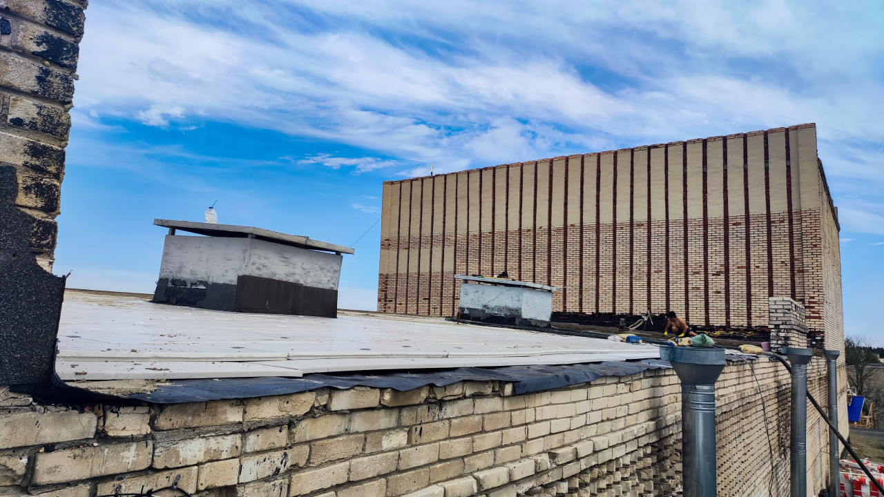 крыша ремонт крыши крыша здания износ кровельные работы ремонт кровли повреждения крыши кровля кровельное покрытие крыша дома вентиляционная шахта строительные работы рабочие на крыше кирпичное здание инженерные системы вентиляционный оголовок строительный объект плоская крыша архитектура здания кровельные технологии монтаж кровли строительные конструкции строительные материалы городской пейзаж строительный процесс эксплуатация зданий строительная площадка инженерные элементы строительные детали фасад здания ремонтные работы строительный инвентарь строительные технологии кирпичная кладкаПохожие фотографии