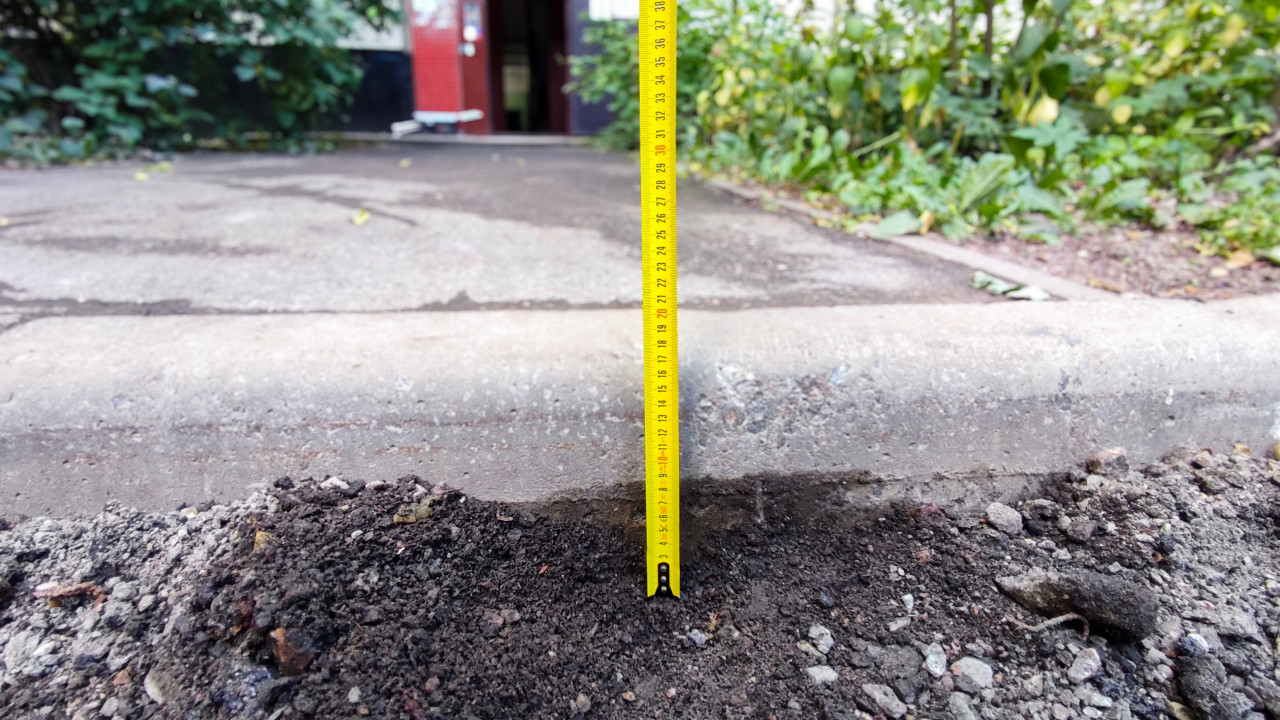 Измерение толщины слоя асфальта на новой пешеходной дорожке