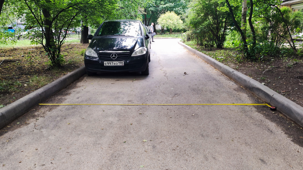 рулетка линейка измерение размеры сантиметры измерения измерительные работы обмеры замеры исследование качество контроль контроль качества проверка качества оценка качества экспертиза двор проезд бордюр замер ширина дороги замер ширины строительные замеры жилой двор автомобиль парковка легковой транспорт Mercedes дорога асфальт пешеход городская среда благоустройство измерение расстояния инженерные работы уличная среда жилая зона строительные технологии правила парковки городская инфраструктура замер дорожного проездаПохожие фотографии