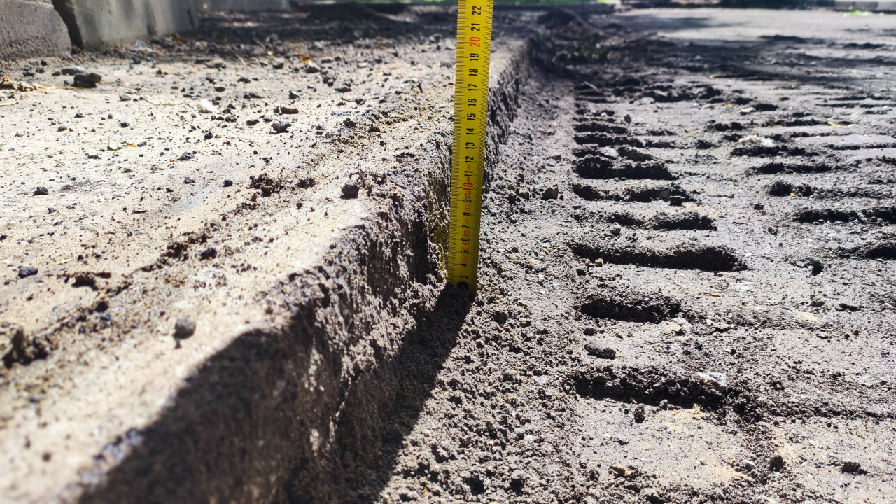 рулетка линейка измерение размеры сантиметры измерения измерительные работы обмеры замеры исследование качество контроль контроль качества проверка качества оценка качества экспертиза замер снятый асфальт глубина среза дорожные работы ремонт дороги фрезеровка покрытия перепад уровня строительные работы ЖКХ благоустройство придомовая территория асфальтирование капитальный ремонт строительный контроль городской двор дорожная инфраструктура придомовой проезд многоэтажный дом подготовка основания снятое покрытие реконструкция дороги техника строительный процессПохожие фотографии
