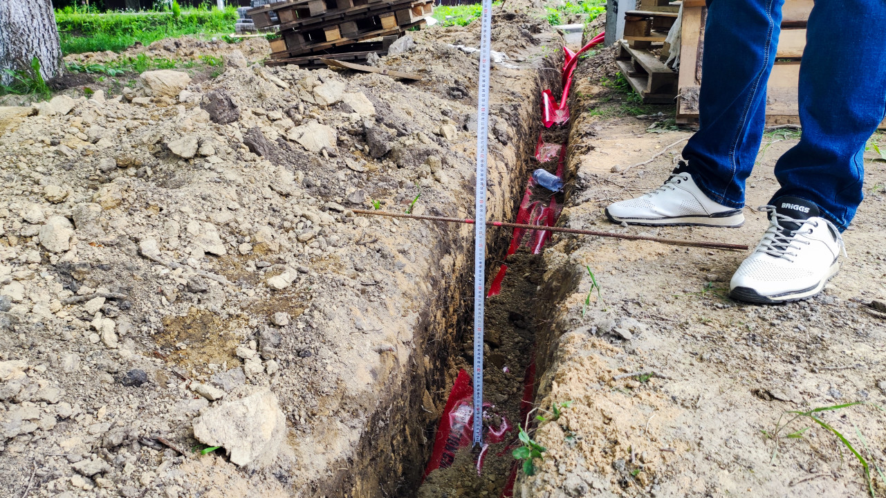 Измерение глубины траншеи с кабелем