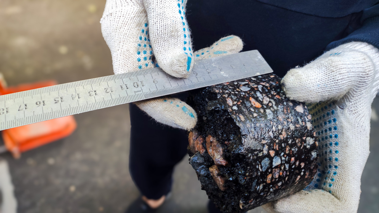 анализ асфальт асфальтобетон дорожное покрытие дорожные материалы дорожные работы дорожная поверхность забор образцов испытание испытания исследование качество контроль контроль качества образец образцы отбор образца отбор образцов отбор проб проба пробы проверка качества тест тестирование экспертиза измерение линейка проверка толщина дорога строительные материалы инженерия бурильное оборудование процесс руки перчатки лабораторные испытания образец асфальта включения материал проверка покрытия технология специалисты строительные работы замер проверка дороги наукаПохожие фотографии