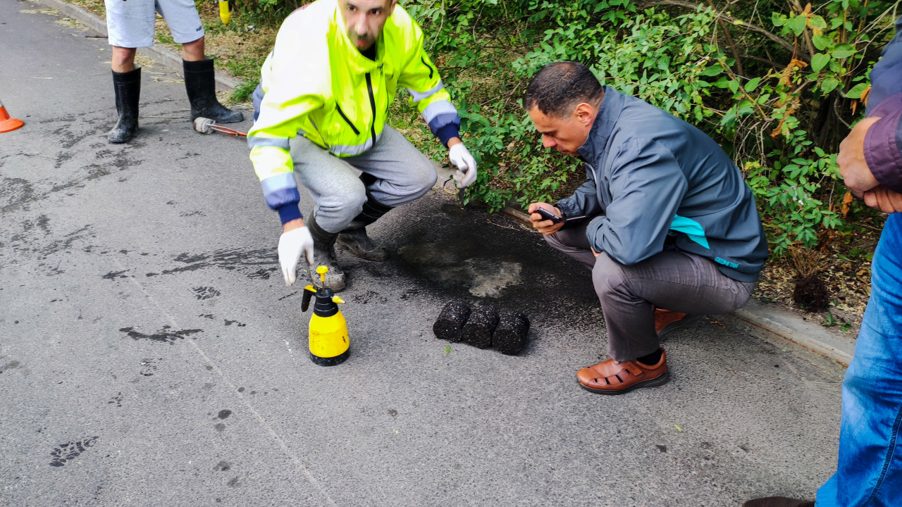 Проверка установки антипарковочных столбиков во дворе многоквартирного дома в дождливую погоду