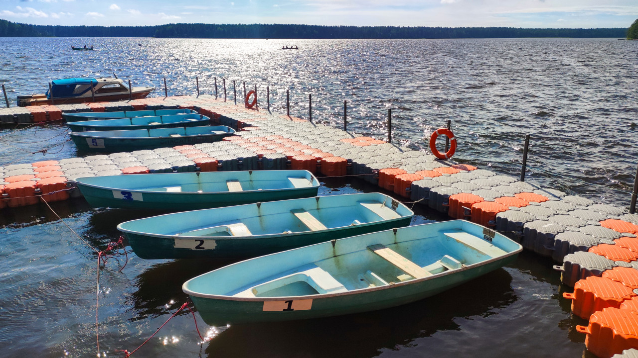 лодка водный транспорт плавсредства гребная лодка номерная лодка понтон причал спасательный круг аренда лодок прокат лодок отдых лето туризм путешествие спорт активный отдых природа озеро водоём вода лес отражение солнца солнечные блики лодочная станция транспорт пляжный отдых досуг туристическая база берег рыбалкаПохожие фотографии