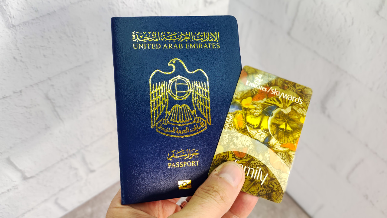 Паспорт ОАЭ и карта Emirates Skywards Family в руке