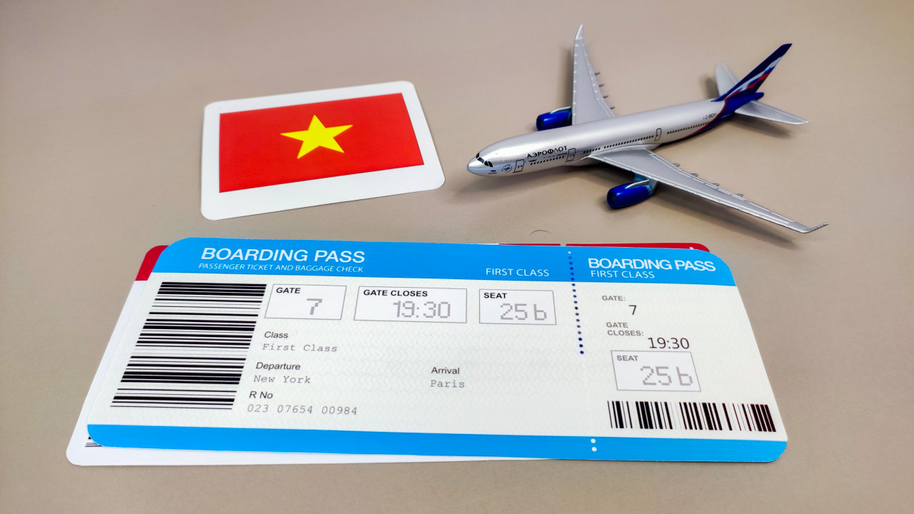 Посадочные талоны, флаг Вьетнама и модель самолёта