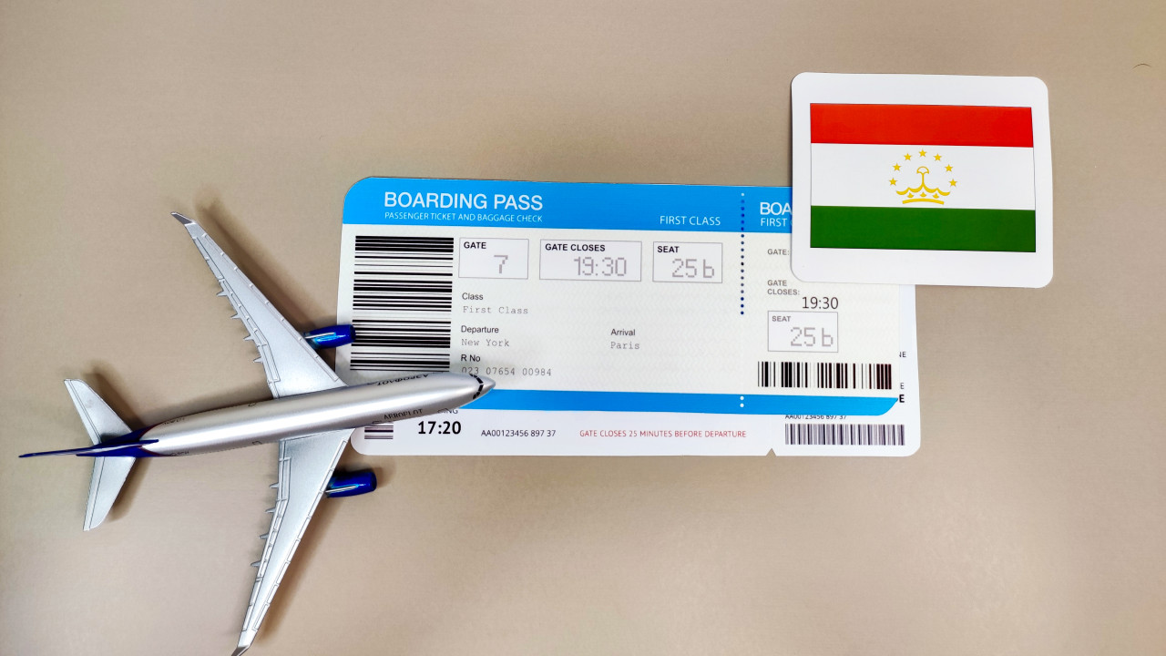 Посадочные талоны, флаг Таджикистана и модель самолёта