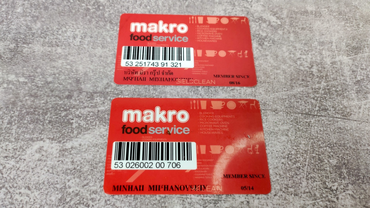 карта лояльности бонусная карта пластиковая карта membership card карта покупателя карта клиента клубная карта дисконтная карта программа лояльности бонусная программа клиентская программа торговая сеть услуги компании Makro Makro Food Service карта участника супермаркет гипермаркет оптовая торговля продукты питания товары для ресторана HoReCa кухонное оборудование посуда техника для кухни карта на столе две карты членство идентификация клиента клиентская карта торговая программа карта сети Makro ТаиландПохожие фотографии