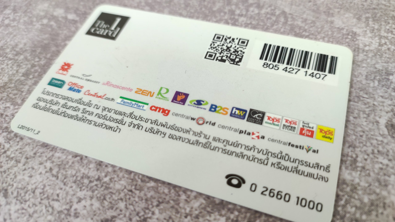 карта лояльности бонусная карта пластиковая карта membership card карта покупателя карта клиента клубная карта дисконтная карта программа лояльности бонусная программа клиентская программа торговая сеть услуги компании The 1 Card скидочная карта обратная сторона штрихкод QR код логотипы магазинов торговые сети Central Robinson FamilyMart Tops B2S Power Buy Supersports Central Festival Central World Central Group клиентская карта ТаиландПохожие фотографии