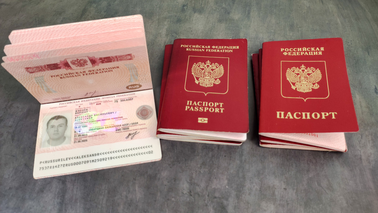 На фотографии представлен заграничный паспорт Российской Федерации, открытый на странице с фотографией владельца, персональными данными и сроком действия документа. Рядом лежат несколько других паспортов в красных обложках. Видны элементы защиты: голограмма, серия, номер и машиносчитываемая зона. Снимок сделан на фоне серой поверхности. Фотография может использоваться в публикациях о международных поездках, миграционных процессах, правилах получения заграничных паспортов, а также для иллюстрации юридических или визовых материалов.