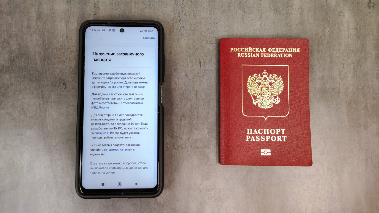 Смартфон с порталом Госуслуг и заграничный паспорт Российской Федерации