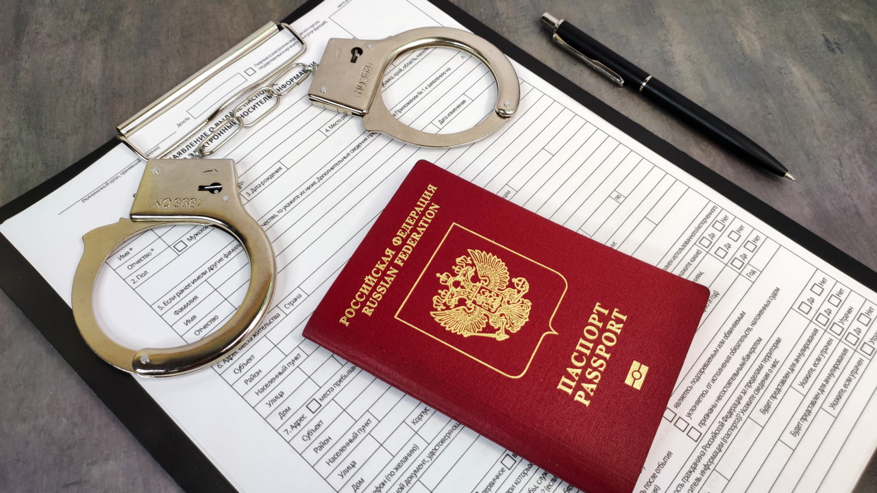 Заграничный паспорт РФ и наручники на анкете