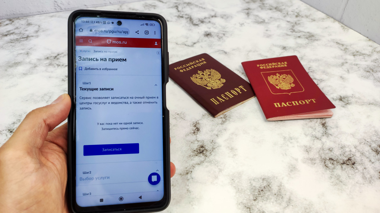 Смартфон с записью на приём через mos.ru и два паспорта РФ