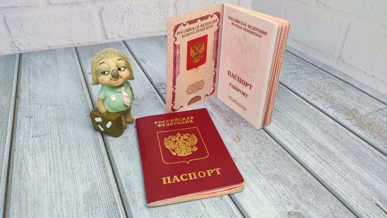 Загранпаспорта РФ рядом с фигуркой путешественника