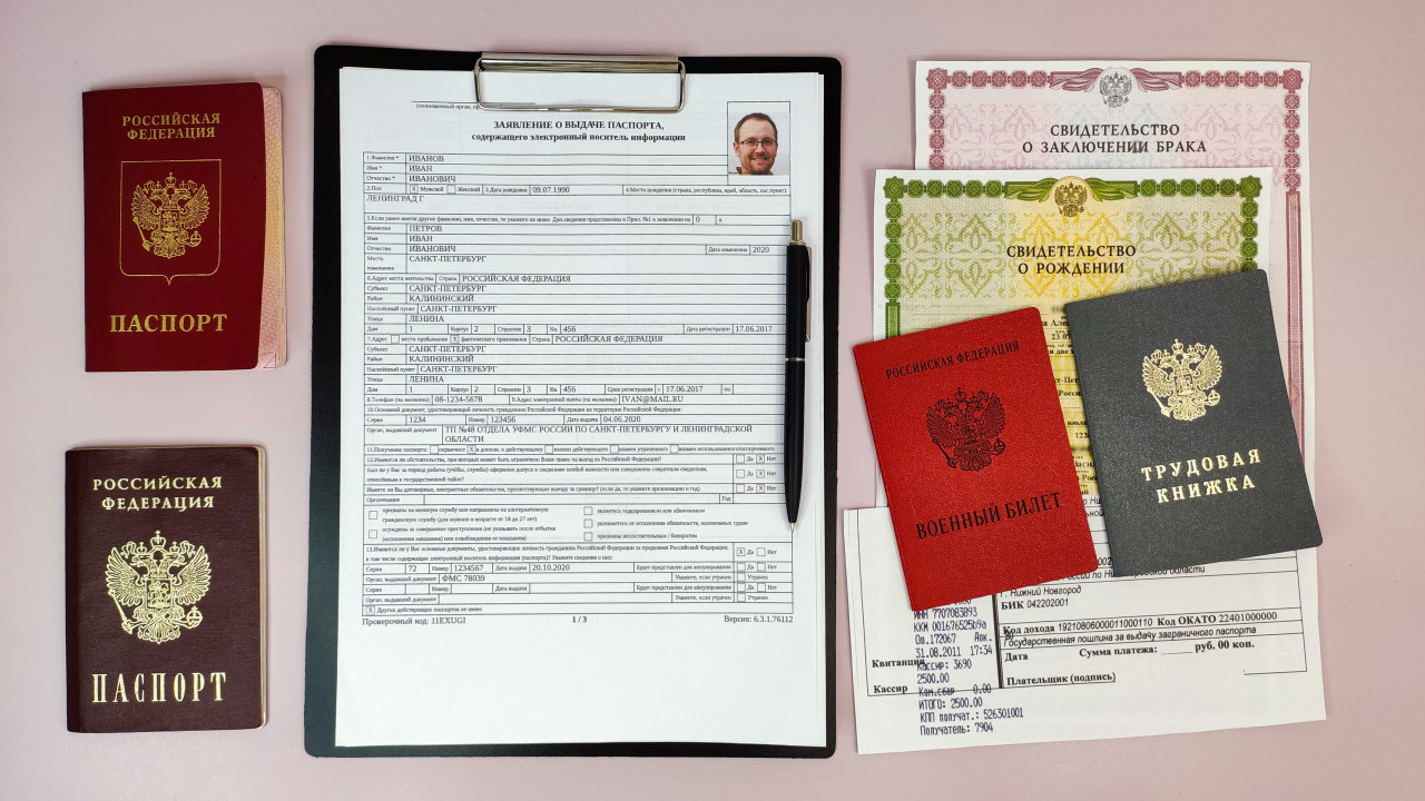 Российские паспорта, заявление на загранпаспорт и личные документы