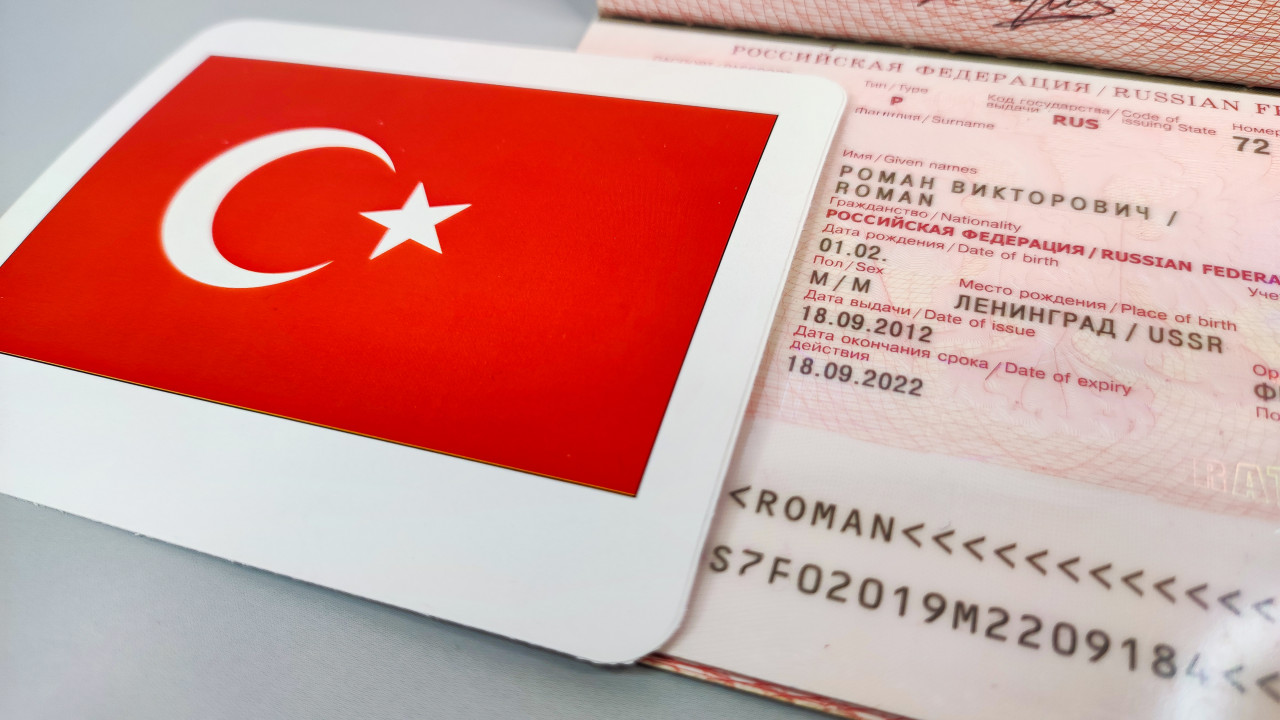 Загранпаспорт России с флагом Турции