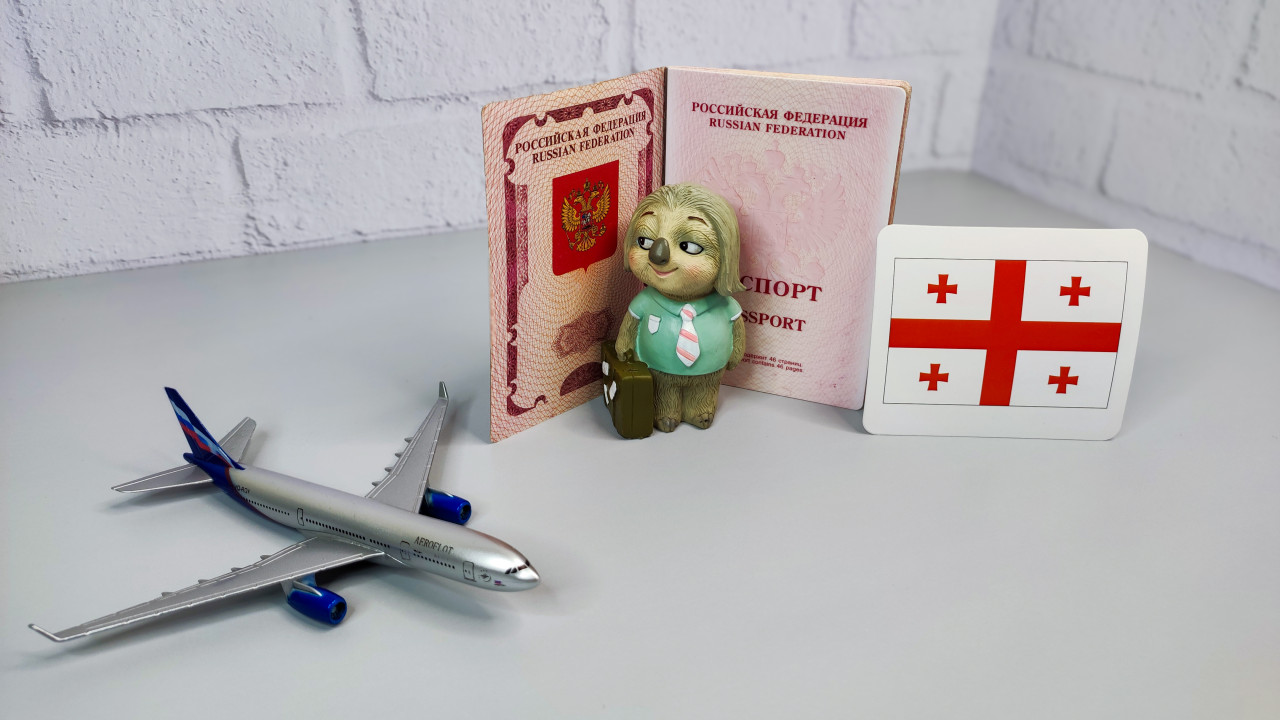 Российский загранпаспорт, флаг Грузии и модель самолета