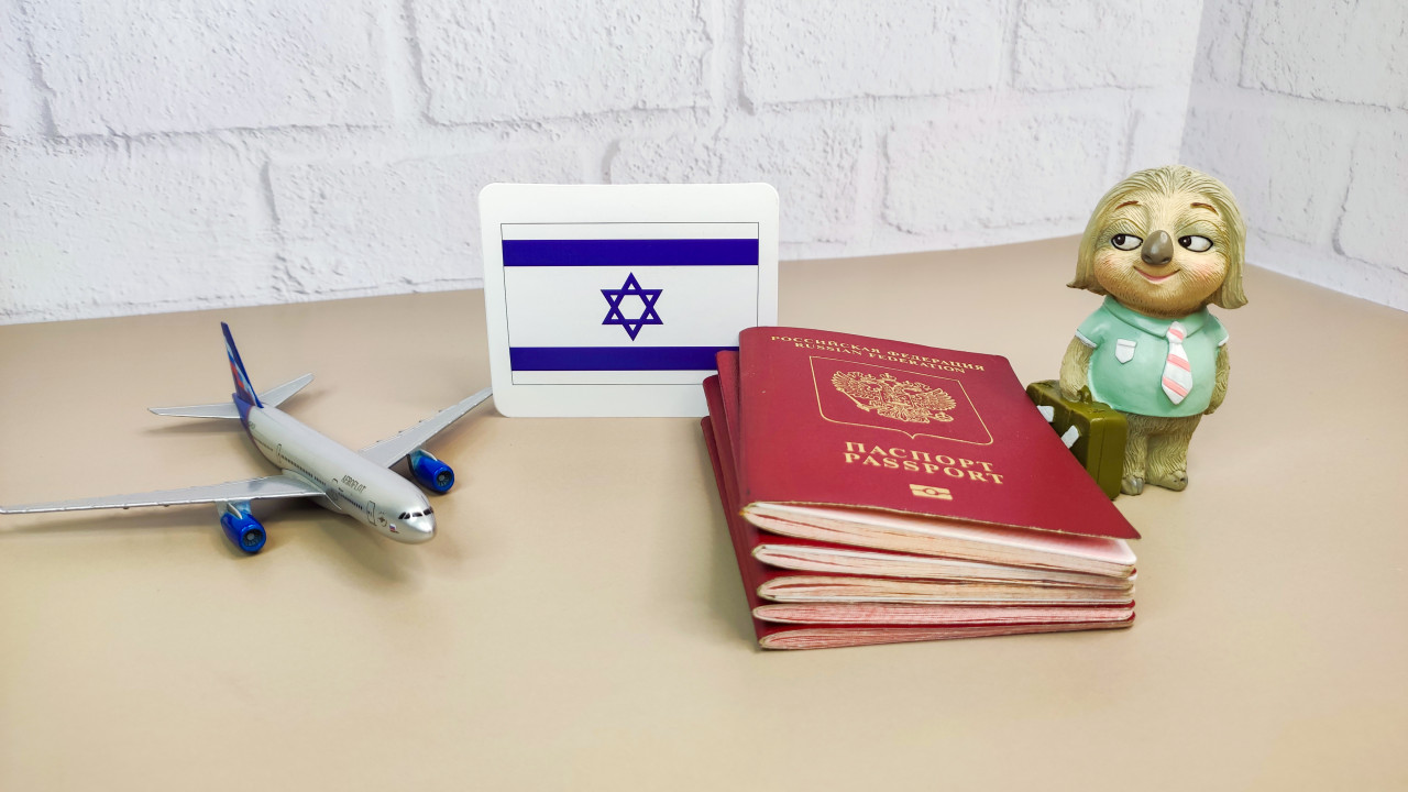 Загранпаспорта РФ, флаг Израиля и модель самолёта