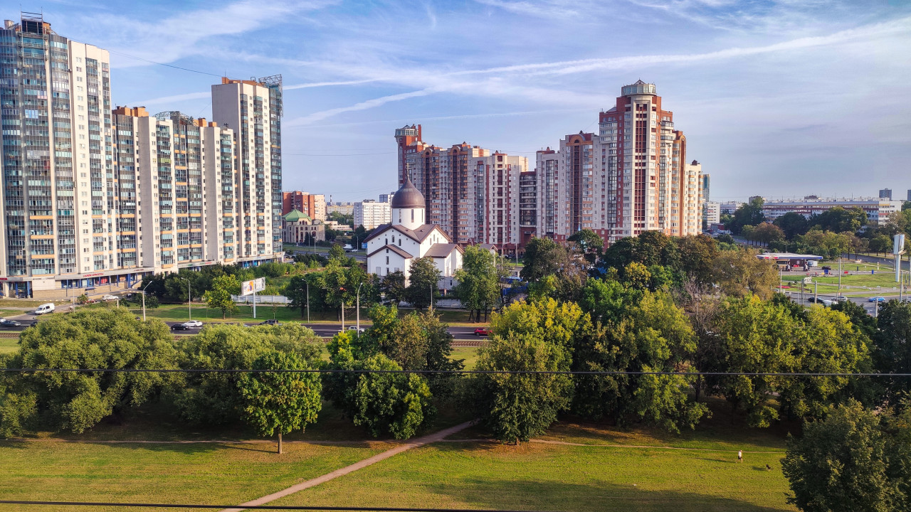 город урбанистика инфраструктура панорама городской пейзаж храм православная церковь жилые дома многоэтажки архитектура парк зелень жилой район православие религия архитектурные объекты ландшафт зелёная зона застройка дорога транспорт современный город вид сверху жилой комплекс храмы России экология города строительство архитектура Петербурга высотные зданияПохожие фотографии